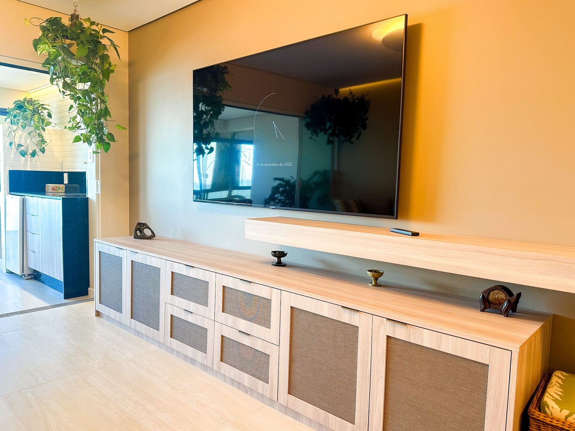 O living integrado com churrasqueira, varanda com rede e ambientes amplos criam o cenário ideal para momentos especiais com família e amigos.