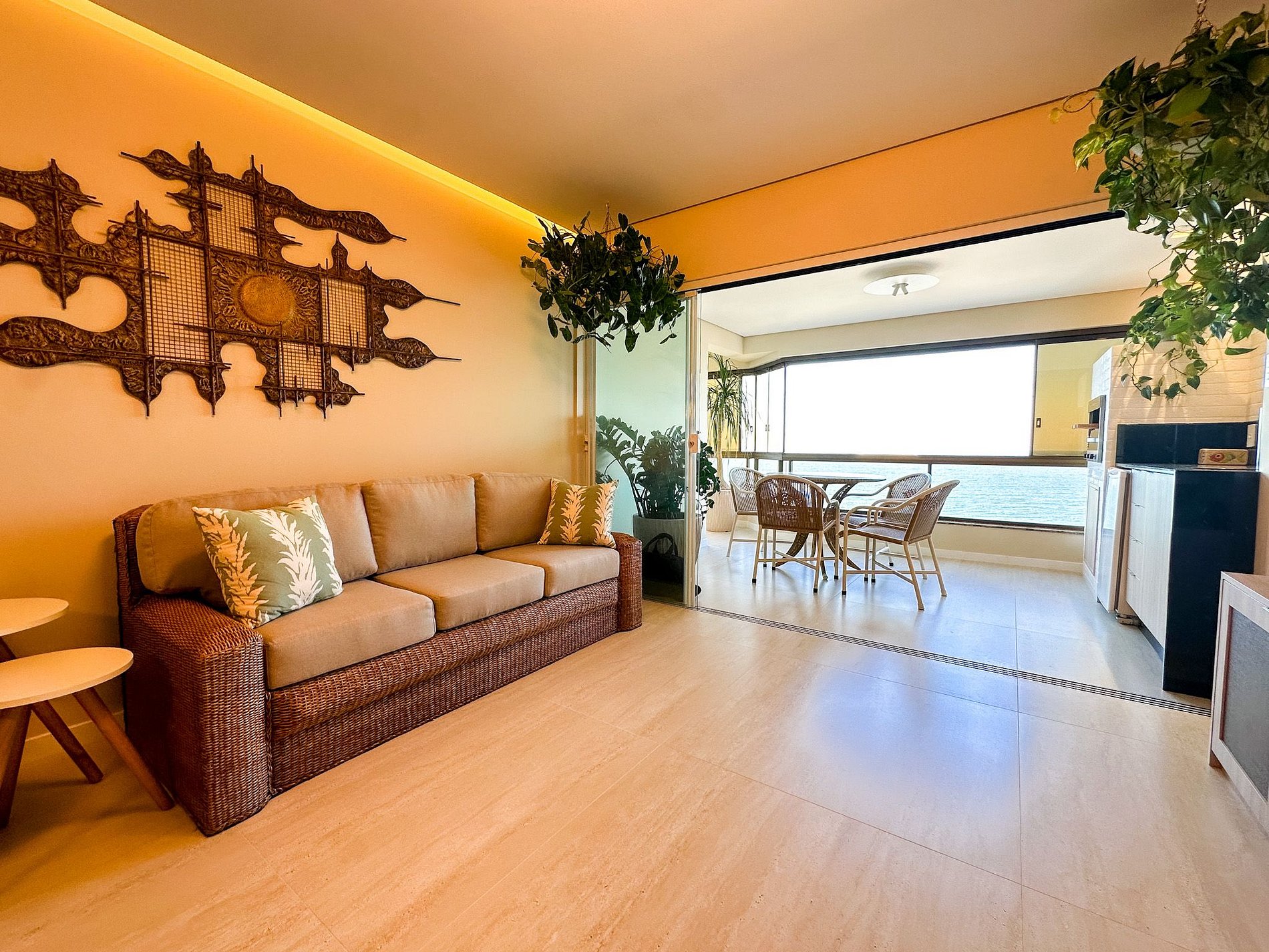 Apartamento totalmente reformado, novo e mobiliado, pensado para oferecer conforto, praticidade e uma experiência única à beira-mar.
